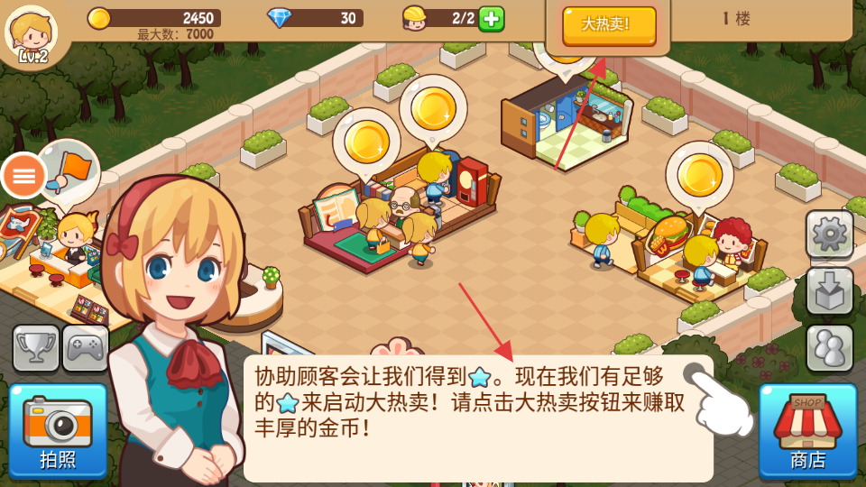 3、獲得星星,當(dāng)星星足夠時,點(diǎn)擊“大熱賣”按鈕,啟動大熱賣活動以賺取豐厚金幣。