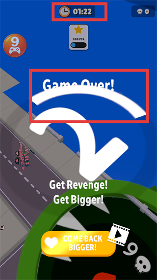 4、注意時(shí)間剩余(如【01:22】),若出現(xiàn)【GameOver!】可通過內(nèi)置菜單選擇復(fù)活或重新開始,爭取更高分?jǐn)?shù)。
