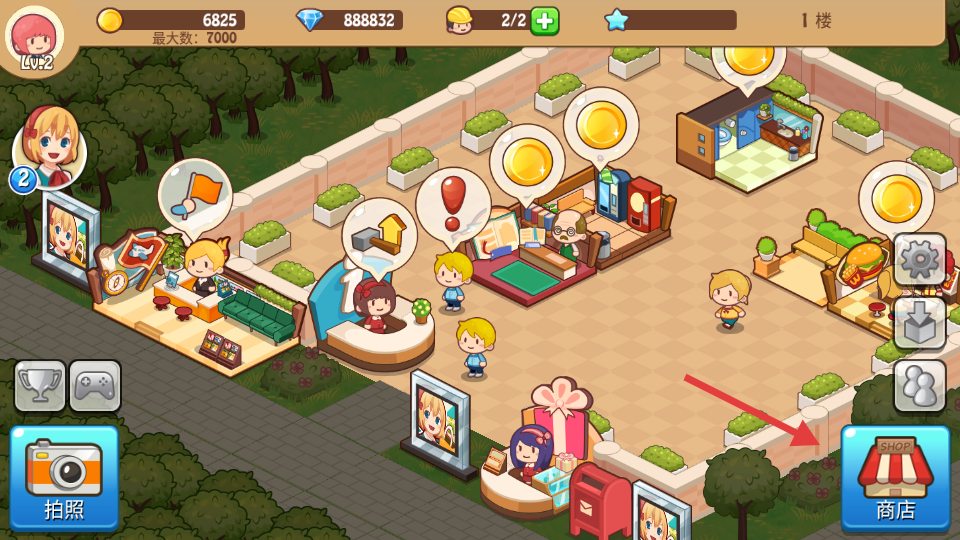 1、點(diǎn)擊右下角【商店】,進(jìn)入店鋪購買界面,準(zhǔn)備擴(kuò)展商場(chǎng)設(shè)施。