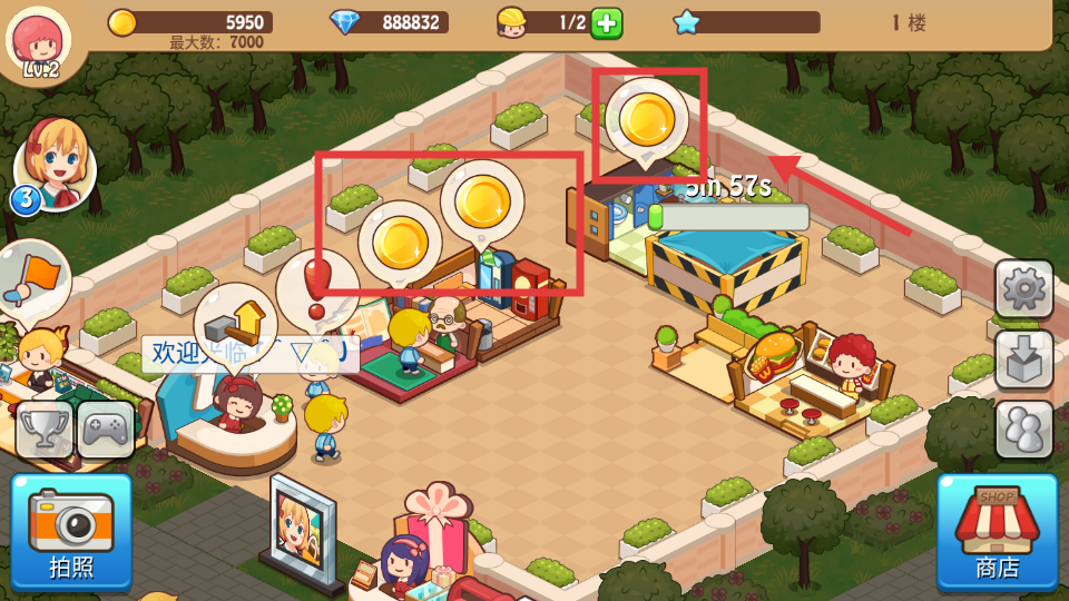4、新店鋪建設(shè)期間,可收取其他店鋪的金幣,待建設(shè)完成后進(jìn)一步提升商場(chǎng)收益。