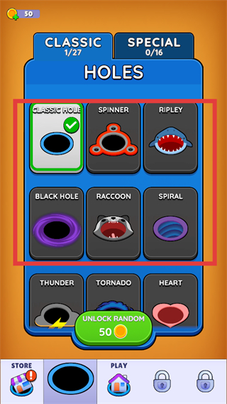 1、在黑洞選擇界面,可挑選不同樣式黑洞,也能用金幣解鎖隨機黑洞,打造專屬外觀。