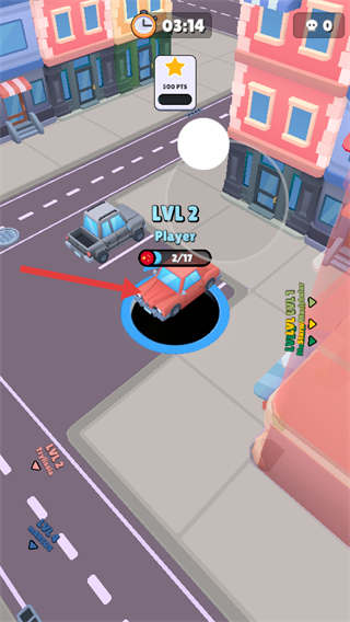 2、游戲中操控黑洞優(yōu)先吞噬紅色汽車等物體,提升等級,同時關(guān)注成長進度,穩(wěn)定發(fā)育。