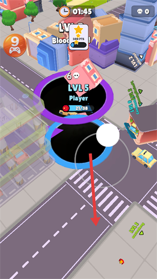 3、升級到【LVL5】后,可嘗試吞噬小型建筑,同時躲避高等級黑洞,持續(xù)吞噬擴大自身。
