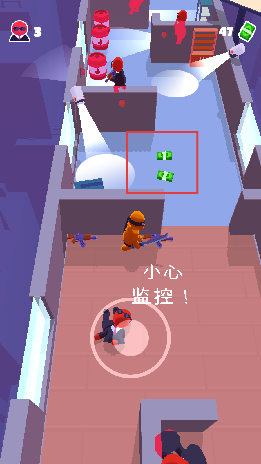 3、收集綠色鈔票時,注意躲避【監(jiān)控】。