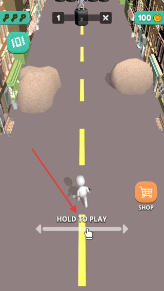 1、點(diǎn)擊【HOLD-TO-PLAY】開始游戲,操控角色在街道上前進(jìn)。
