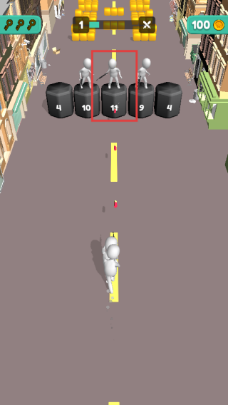 2、前進(jìn)中前方帶有數(shù)字的黑塊,射擊方塊將其摧毀,上方的人物即可成為我們的隊(duì)友。