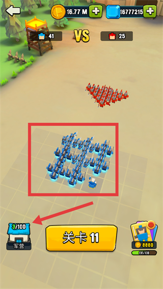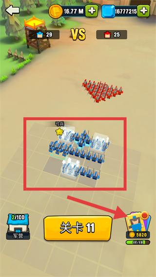 1、關(guān)卡11戰(zhàn)斗前,合理布置士兵陣容,點(diǎn)擊右下角許愿池,進(jìn)入抽卡選項(xiàng)。