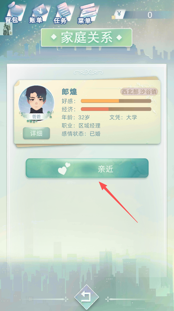 3、之后通過【親近】按鈕提升好感度,還能解鎖更多家庭互動(dòng)劇情,助力咱們的人生模擬之旅呀。
