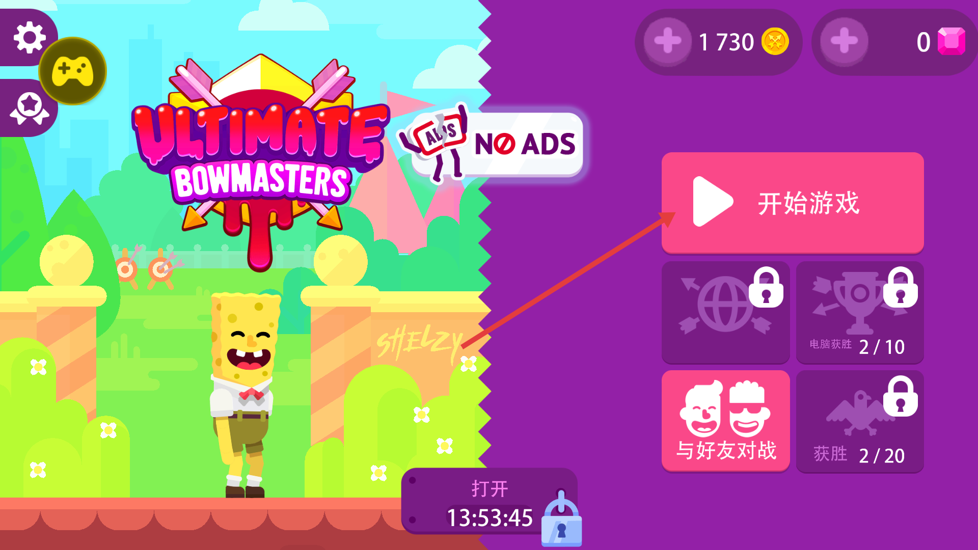 1、在主界面點(diǎn)擊【開始游戲】,可選擇單人對(duì)戰(zhàn)或【與好友對(duì)戰(zhàn)】模式,參與彈射對(duì)決,積累勝利解鎖更多功能。