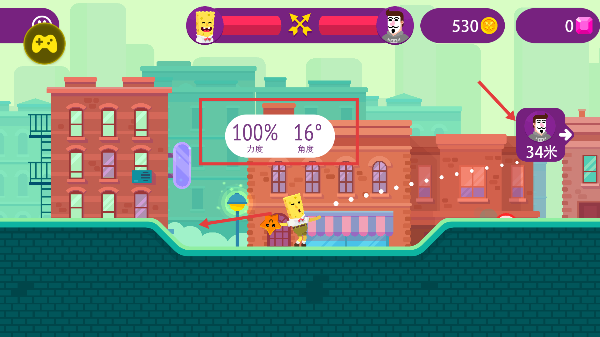 2、戰(zhàn)斗時(shí)需精準(zhǔn)調(diào)整【力度-100%】【角度-16°】等參數(shù),根據(jù)敵人距離(如34米)控制攻擊軌跡,提升命中概率。