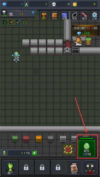 1、點擊綠瓶制作僵尸,為后續(xù)關(guān)卡準備。