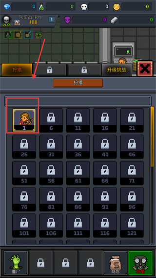 2、解鎖狩獵,選擇關(guān)卡,通過關(guān)卡獲取更多資源以推進游戲進程。