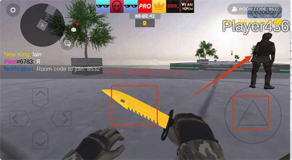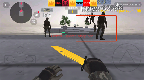 2、注意界面提示,若出現(xiàn)【Kicked.-Update-bhop-pro.】,需及時(shí)更新游戲,同時(shí)關(guān)注【ROOM-CODE】,可加入對(duì)應(yīng)房間參與多人競技。