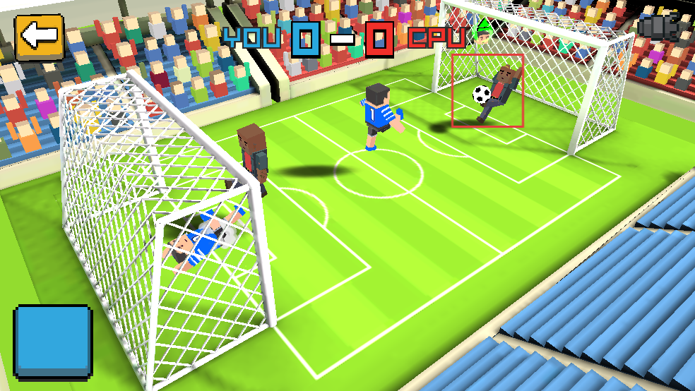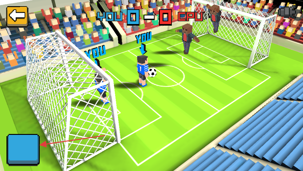 2、游戲中通過(guò)左側(cè)藍(lán)色方塊控制角色移動(dòng),操控球員在場(chǎng)上走位。