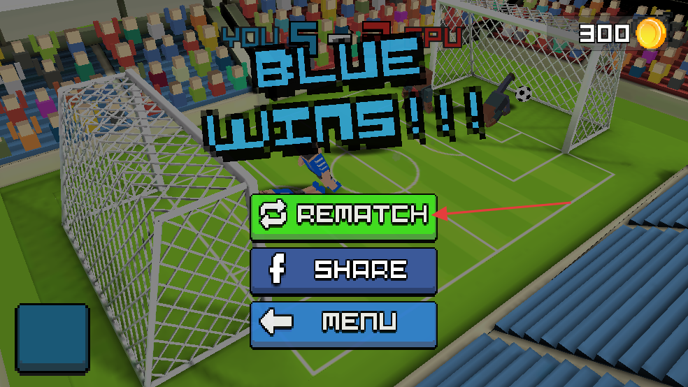 4、獲勝后點(diǎn)擊【REMATCH】按鈕可再次挑戰(zhàn),不斷提升踢球技巧。