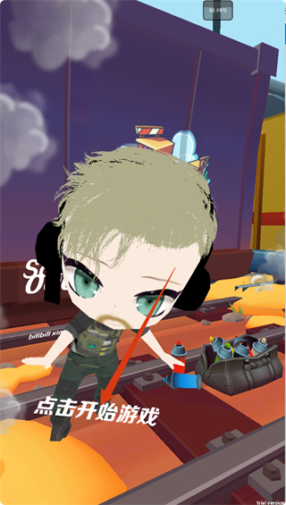 1、點(diǎn)擊【點(diǎn)擊開始游戲】進(jìn)入游戲,界面中角色和涂鴉元素提示這是一款跑酷類游戲,開始探索游戲玩法。