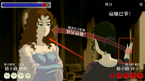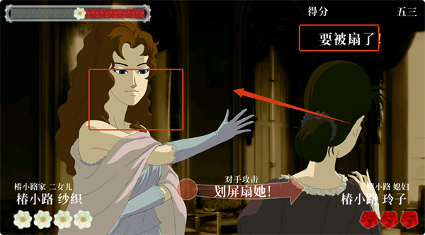 2、戰(zhàn)斗時,按照提示【瞄準對手臉頰劃屏扇她】,對敵人發(fā)動攻擊,注意觀察得分變化,提升攻擊技巧。