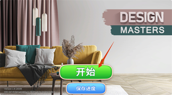 1、點(diǎn)擊【開始】進(jìn)入游戲,界面中【DESIGN-MASTERS】的標(biāo)題提示這是一款室內(nèi)設(shè)計(jì)類游戲,開啟設(shè)計(jì)之旅。