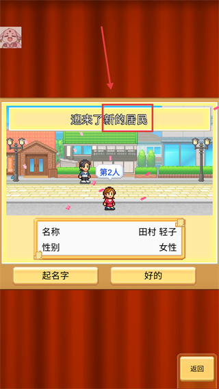1、當(dāng)迎來【新的居民】時(shí),可根據(jù)需求選擇【起名字】或【好的】,完成居民入駐流程以推動(dòng)城市人口發(fā)展。