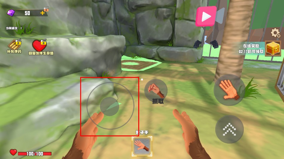 2、使用【移動(dòng)搖桿】控制視角移動(dòng),配合【猴子手】按鈕完成基礎(chǔ)互動(dòng),快速適應(yīng)籠內(nèi)操作節(jié)奏。