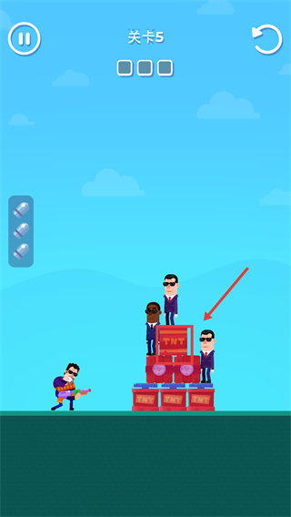 2、【關卡5】里敵人堆疊在爆炸物上方,瞄準爆炸物可觸發(fā)連鎖效果,一次性清除多個目標,節(jié)省彈藥。