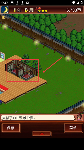 3、泡完溫泉可以在房間里休息,同時注意每日需支付【110幣-維護費】以維持設(shè)施運營。