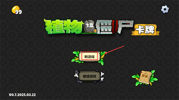 1、進(jìn)入【植物大戰(zhàn)僵尸-卡牌】游戲界面后,可選擇【新游戲】開(kāi)啟對(duì)局,或選【繼續(xù)游戲】恢復(fù)進(jìn)度。