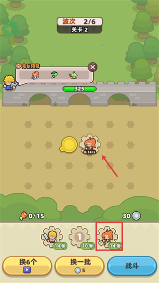 2、在【波次-2/6-關(guān)卡2】中,根據(jù)【克制預(yù)警】選【14-鉆石】對(duì)應(yīng)的弓箭手兵種,部署后可穩(wěn)定產(chǎn)出資源。