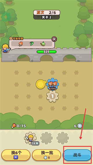 4、完成兵種與齒輪部署后,點(diǎn)擊【戰(zhàn)斗】按鈕觸發(fā)波次進(jìn)攻,借助已部署單位的效果應(yīng)對(duì)敵方攻勢(shì)。