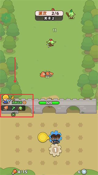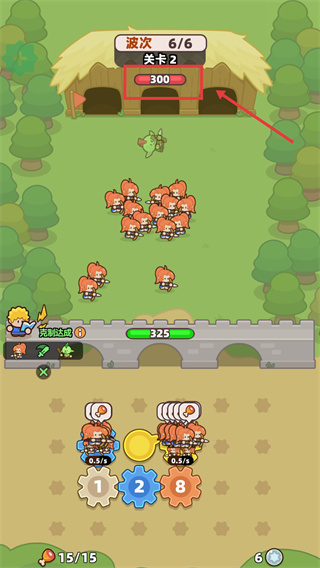 3、到【波次-6/6-關(guān)卡2】時(shí),敵方攻勢(shì)增強(qiáng),集中火力突破敵方【300】戰(zhàn)力的防線(xiàn)。