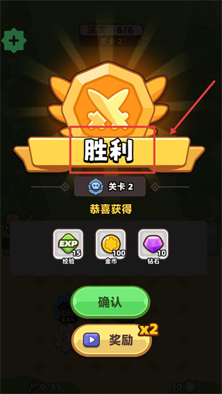 4、關(guān)卡勝利后,可獲得獎(jiǎng)勵(lì),點(diǎn)擊【確認(rèn)】領(lǐng)取并推進(jìn)至下一關(guān)。