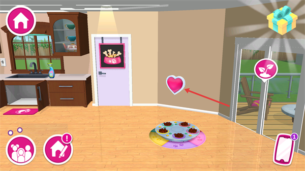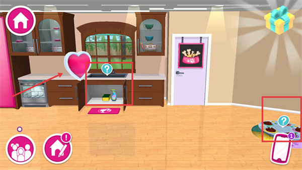 2、留意界面中的【?】標(biāo)記,聚焦水槽區(qū)域的互動點,并獲得心形元素的完成該區(qū)域交互,以此推進(jìn)場景的游戲進(jìn)度。