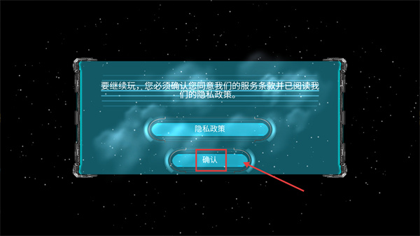 1、進入游戲前需點擊【確認】按鈕,同意【服務(wù)條款】與【隱私政策】,完成此步驟才能進入游戲玩法。