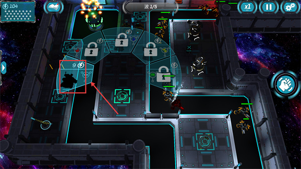 2、消耗【9-電力】召喚單位,部署至戰(zhàn)場以抵御敵方初期波次的進攻。