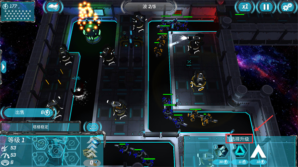 4、點擊【選擇升級】選項,消耗資源提升單位等級,增強戰(zhàn)力以應(yīng)對后續(xù)更密集的敵方波次。