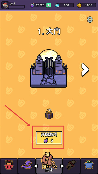 1、消耗【5-藥水】點(diǎn)擊【開始游戲】,進(jìn)入關(guān)卡,開啟戰(zhàn)斗玩法積累資源。
