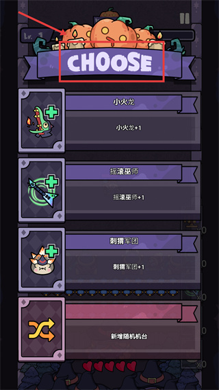 2、在【CHOOSE】界面選擇【小火龍】等單位,獲取對(duì)應(yīng)戰(zhàn)力,助力后續(xù)關(guān)卡的敵人攔截。