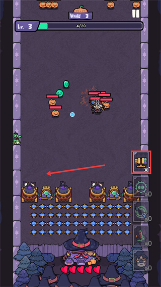 3、在【W(wǎng)AVE-3】階段,使用右側(cè)道具欄的裝置,增強(qiáng)炮臺(tái)輸出,高效清理南瓜類敵人。