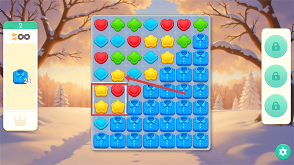 2、在消除關(guān)卡中,當(dāng)前【藍(lán)色襯衫】未收集剩余2,可借助【轉(zhuǎn)盤】等道具提升消除效率,道具可加快目標(biāo)道具的收集節(jié)奏。