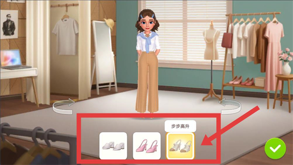4、收集禮盒后在服飾搭配界面,可隨機選取鞋裝,確認(rèn)選擇后完成該服飾部件的搭配,推進角色裝扮流程。