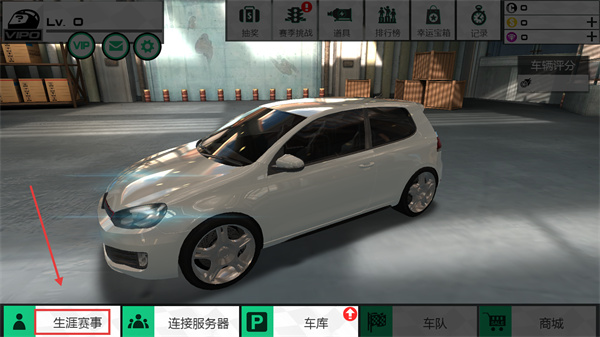1、進(jìn)入主界面后,點(diǎn)擊【生涯賽事】開啟賽事挑戰(zhàn),同時(shí)可利用【抽獎(jiǎng)】【賽季挑戰(zhàn)】等功能獲取資源提升車輛。