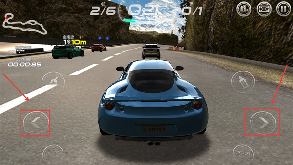 2、賽事中通過左右箭頭按鈕控制車輛轉(zhuǎn)向,留意【最好單圈】與【本次單圈】時(shí)間,調(diào)整節(jié)奏提升成績(jī)。