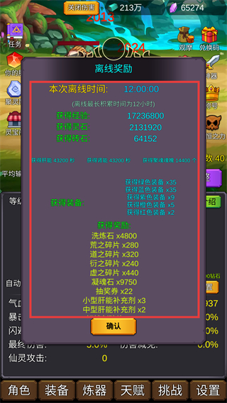 2、領(lǐng)取離線獎(jiǎng)勵(lì)獲取經(jīng)驗(yàn)靈石和裝備,積累資源提升實(shí)力,助力擊敗深淵魔物成長(zhǎng)。