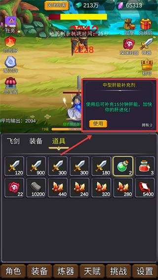 4、使用中型肝能補(bǔ)充劑,補(bǔ)充15分鐘肝能加快進(jìn)化,提升肝能效率助力修仙成長(zhǎng)。
