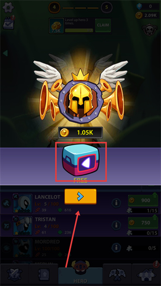 3、戰(zhàn)斗勝利后領(lǐng)取獎勵,點擊【TREASURE】寶箱可解鎖新英雄或資源。