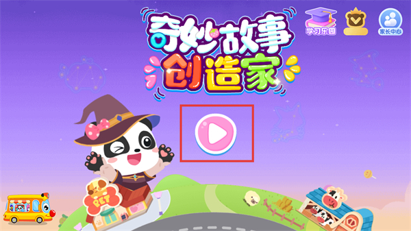 1、看到【奇妙故事創(chuàng)造家】界面,點擊紅色框選的播放按鈕,進入游戲,開啟故事場景的創(chuàng)造與布置環(huán)節(jié)。