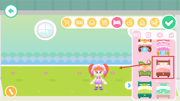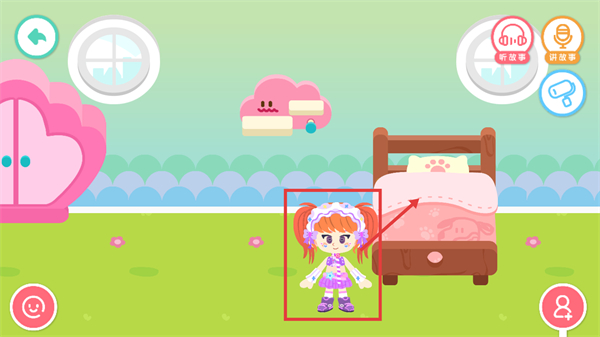 4、在布置好的場景中,點擊紅色框選的角色,讓其靠近床的位置,完成本次場景布置的互動環(huán)節(jié)。