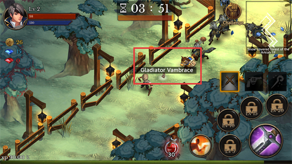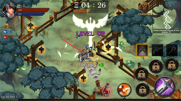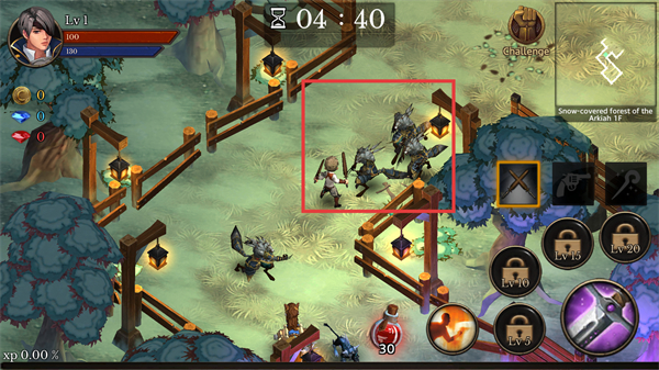 1、關(guān)卡中遭遇多只怪物時,操控角色與怪物戰(zhàn)斗,可利用右側(cè)技能提升輸出,快速清理敵人推進(jìn)進(jìn)度。
