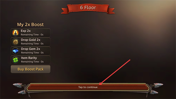 4、通關(guān)至【6-Floor】后,界面顯示增益選項,點擊【Tap-to-continue】可繼續(xù)挑戰(zhàn)下一層。