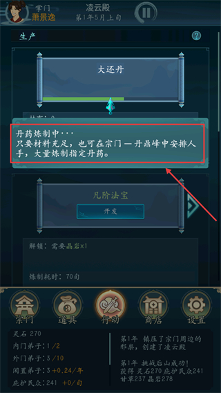 2、材料充足時,在【丹鼎峰】安排人手批量煉制丹藥,保障宗門丹藥供給提升戰(zhàn)力。